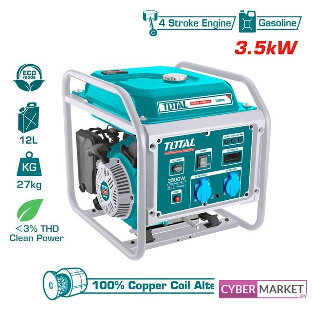 бензиновый, исполнение: открытое, 3 кВт, запуск: ручной, время непрерывной работы: 8 ч, 36 кг