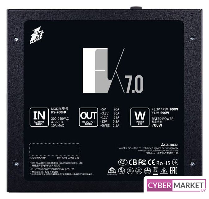 ATX 700 Вт, активная PFC, бронзовый сертификат, вентилятор 1x120 мм, 1x 12В 58.3А