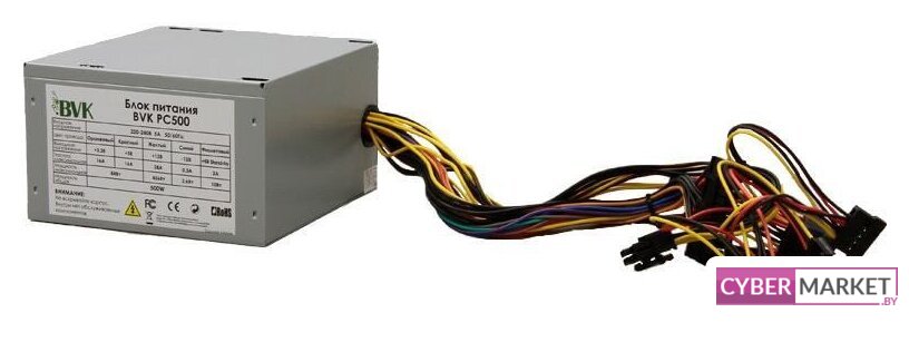 ATX 500 Вт, вентилятор 1x120 мм, 1x 12В 38А