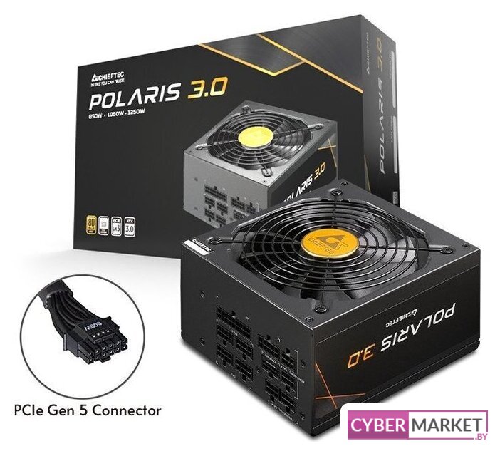 ATX 1200 Вт, активная PFC, золотой сертификат, вентилятор 1x120 мм, модульные кабели, 1x 12В 100А, 1x PCIe Gen5