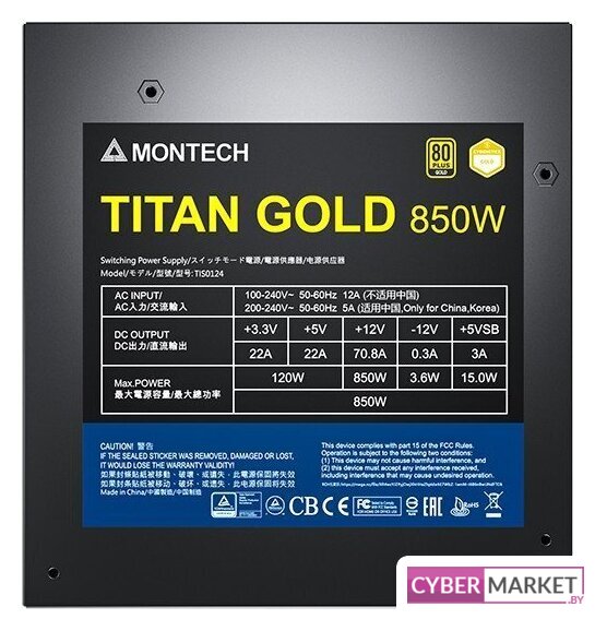 ATX 850 Вт, активная PFC, золотой сертификат, вентилятор 1x140 мм, модульные кабели, 1x 12В 70.8А