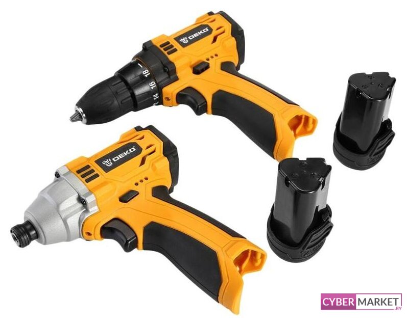 | Комплектация | - Аккумуляторная дрель Deko DKCD12 - 1 шт.- Винтоверт аккумуляторный DEKO DKIS12 - 1 шт.- Аккумулятор - 2 шт.- Зарядное устройство - 1 шт.- Инструкция- Кейс |