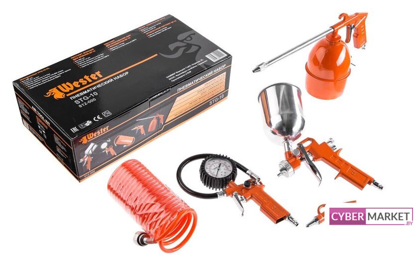 | Состав набора | краскораспылитель, пистолет моющий, пистолет продувочный, пистолет для подкачки |