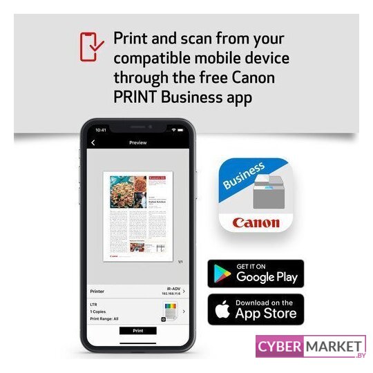 МФУ, лазерный, черно-белый, формат A4 (210x297 мм), скорость ч/б печати 35 стр/мин, разрешение 1200 dpi, LAN