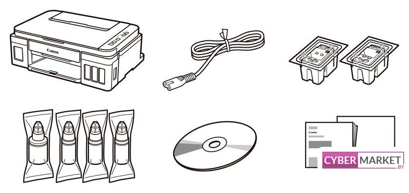 | Комплектация | • PIXMA G2410• 4 чернильных контейнера• Кабель питания• Установочный CD-диск• Руководства пользователя и другие документы |