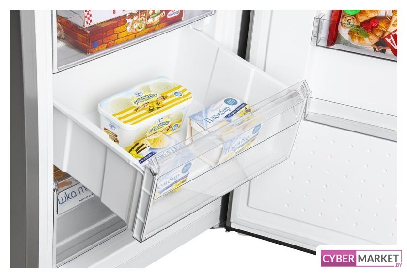 отдельностоящий, полный No Frost, электронное управление, класс A+, полезный объём: 311 л (213 + 98 л), инверторный компрессор, перенавешиваемые двери, выдвижная полка, лоток для яиц, 59.5x67.5x178 см, серебристый