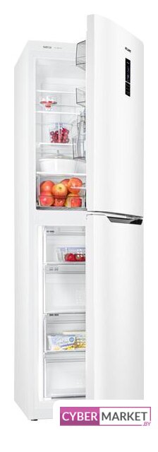 отдельностоящий, без No Frost, электронное управление, класс A+, полезный объём: 370 л (251 + 119 л), зона свежести, перенавешиваемые двери, выдвижной/подвесной контейнер, лоток для яиц, 59.5x62.7x206.8 см, белый