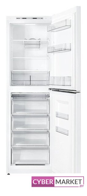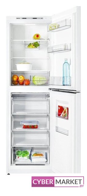 отдельностоящий, без No Frost, электронное управление, класс A+, полезный объём: 301 л (182 + 119 л), перенавешиваемые двери, лоток для яиц, 59.5x62.7x176.8 см, белый