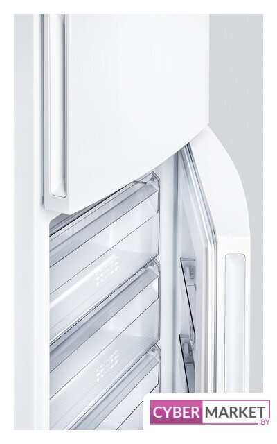 отдельностоящий, полный No Frost, электронное управление, класс A, полезный объём: 333 л (227 + 106 л), перенавешиваемые двери, лоток для яиц, 59.5x65.7x185 см, белый