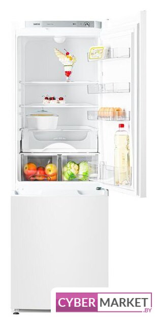 отдельностоящий, без No Frost, механическое управление, класс A+, полезный объём: 288 л (187 + 101 л), перенавешиваемые двери, лоток для яиц, 59.5x62.5x172.9 см, белый