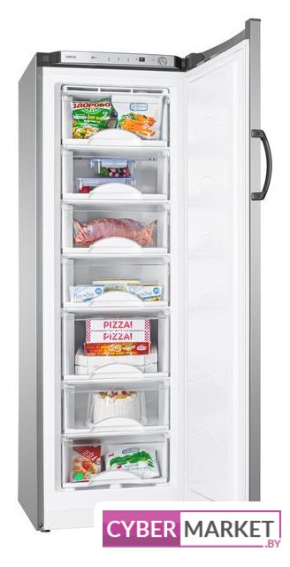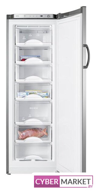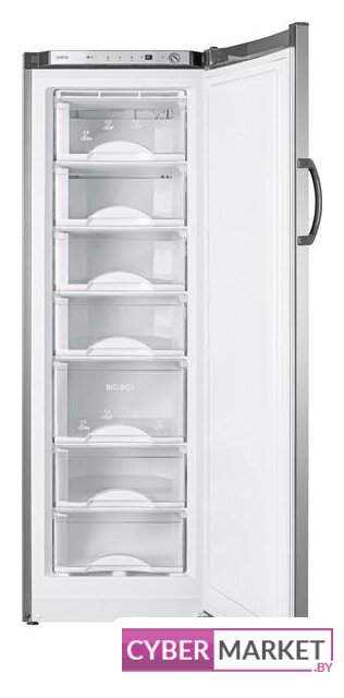 отдельностоящий, без No Frost, электронное управление, класс A+, полезный объём: 301 л (182 + 119 л), перенавешиваемые двери, подвесной контейнер, подставка-лоток для бутылок, лоток для яиц, масленка, 59.5x62.9x176.8 см, серебристый