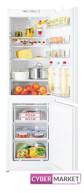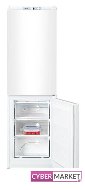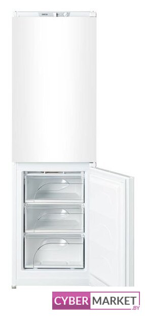 встраиваемый, без No Frost, электронное управление, класс A+, полезный объём: 250 л (185 + 65 л), перенавешиваемые двери, лоток для яиц, 54x54x178 см, белый