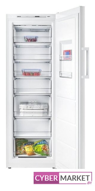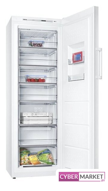 отдельностоящий, полный No Frost, электронное управление, класс A+, полезный объём: 357 л (211 + 125 л), зона свежести, перенавешиваемые двери, автодоводчик дверей, складная полка, полка для вина, лоток для яиц, 59.5x66x206.8 см, белый