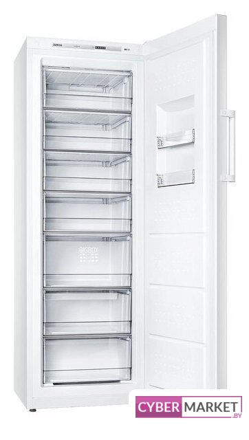 отдельностоящий, без No Frost, электронное управление, класс A+, полезный объём: 370 л (251 + 119 л), зона свежести, перенавешиваемые двери, выдвижной/подвесной контейнер, лоток для яиц, 59.5x62.7x206.8 см, белый