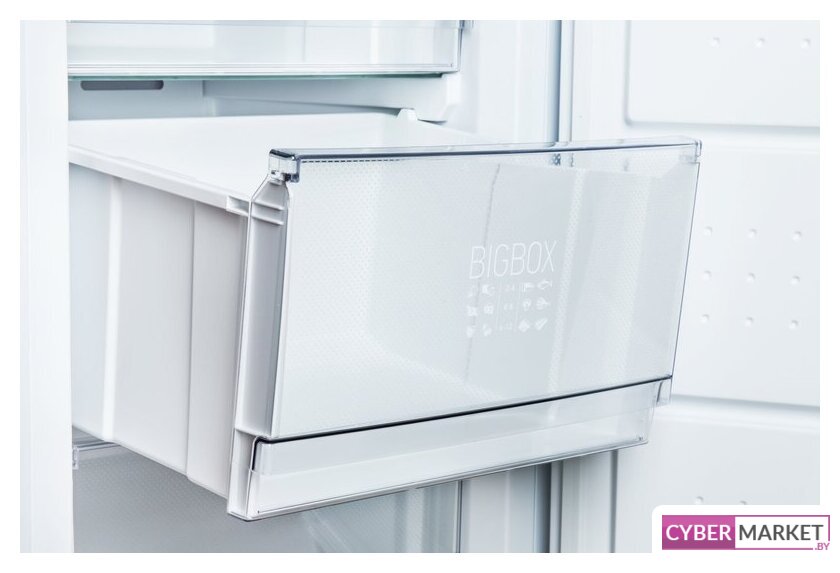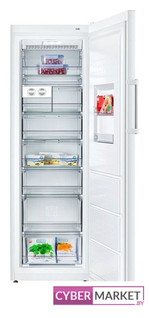 отдельностоящий, полный No Frost, электронное управление, класс A, полезный объём: 370 л (264 + 106 л), перенавешиваемые двери, лоток для яиц, 59.5x65.7x200 см, белый