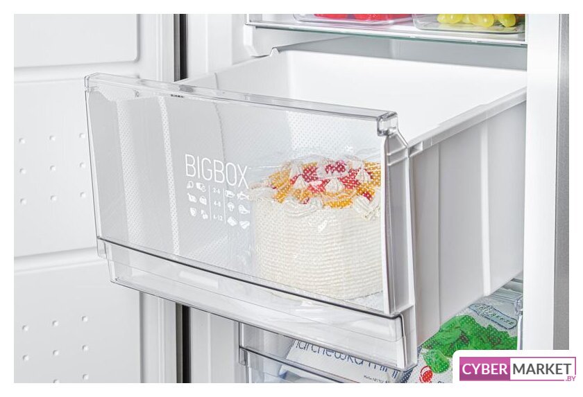 отдельностоящий, полный No Frost, электронное управление, класс A+, полезный объём: 357 л (257 + 100 л), зона свежести, перенавешиваемые двери, лоток для яиц, 59.5x65x201 см, антрацит