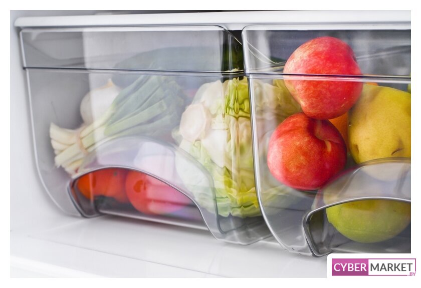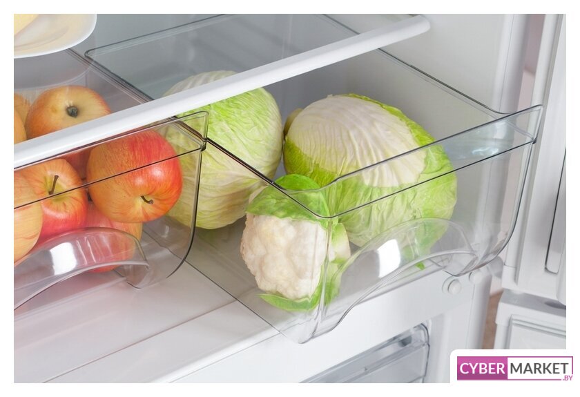 отдельностоящий, полный No Frost, механическое управление, класс A, полезный объём: 298 л (220 + 78 л), перенавешиваемые двери, лоток для яиц, 60x64x185 см, белый