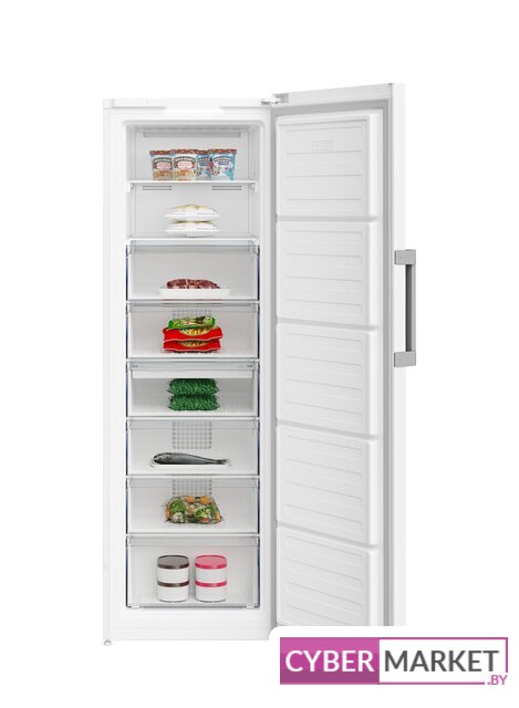 отдельностоящий, полный No Frost, электронное управление, класс A+, полезный объём: 320 л (220 + 100 л), перенавешиваемые двери, лоток для яиц, 59.5x65x186 см, белый