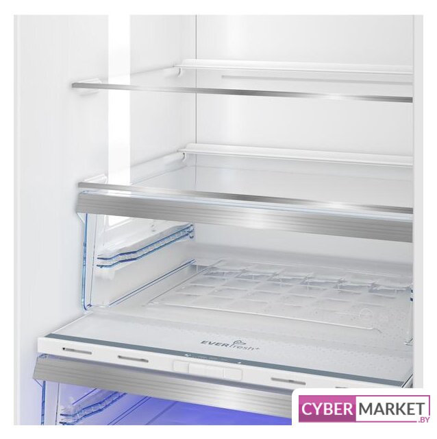 отдельностоящий, полный No Frost, электронное управление, класс A+, полезный объём: 320 л (220 + 100 л), перенавешиваемые двери, лоток для яиц, 59.5x65x186 см, белый