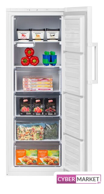 отдельностоящий, без No Frost, электронное управление, класс A+, полезный объём: 347 л, перенавешиваемые двери, подставка-лоток для бутылок, лоток для яиц, 59.5x62.9x176.8 см, белый