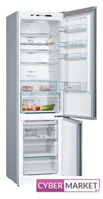 отдельностоящий, полный No Frost, электронное управление, класс A+, полезный объём: 367 л (269 + 98 л), инверторный компрессор, зона свежести, перенавешиваемые двери, лоток для яиц, 59.5x64.7x201 см, серебристый