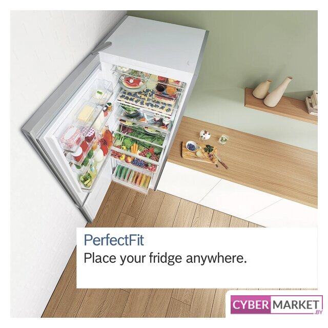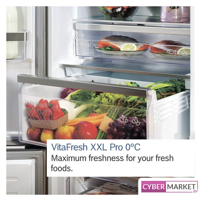 отдельностоящий, No Frost (морозильная камера), сенсорное управление, полезный объём: 361 л (258 + 103 л), зона свежести, перенавешиваемые двери, складная полка, лоток для яиц, 59.7x67.5x201.5 см, темная сталь