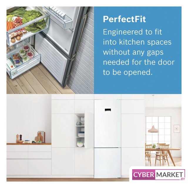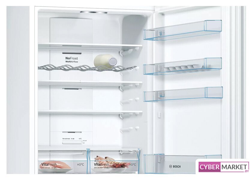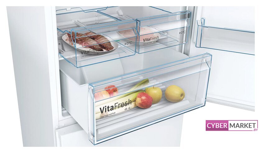 отдельностоящий, полный No Frost, электронное управление, полезный объём: 367 л (266 + 101 л), инверторный компрессор, зона свежести, перенавешиваемые двери, лоток для яиц, отделка: стекло, 59.5x66x201 см, белый