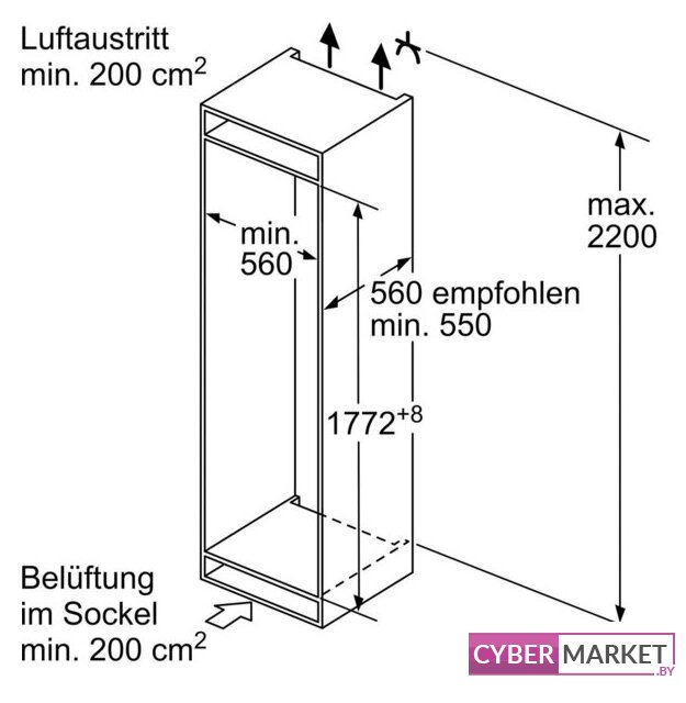 встраиваемый, No Frost (морозильная камера), электронное управление, класс A+, полезный объём: 200 л, перенавешиваемые двери, 54x54x177.6 см, белый
