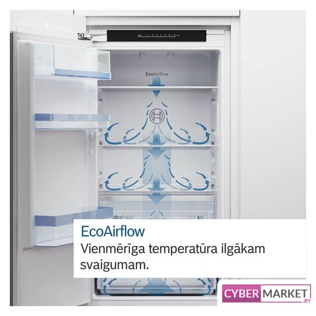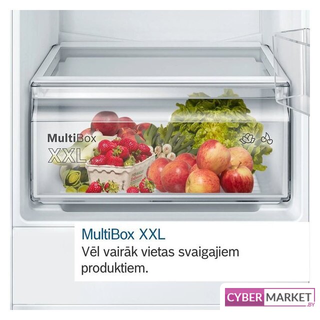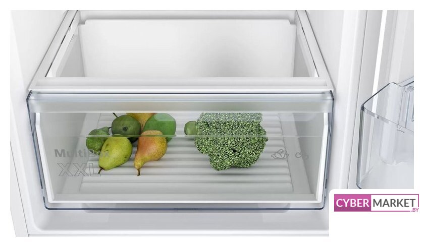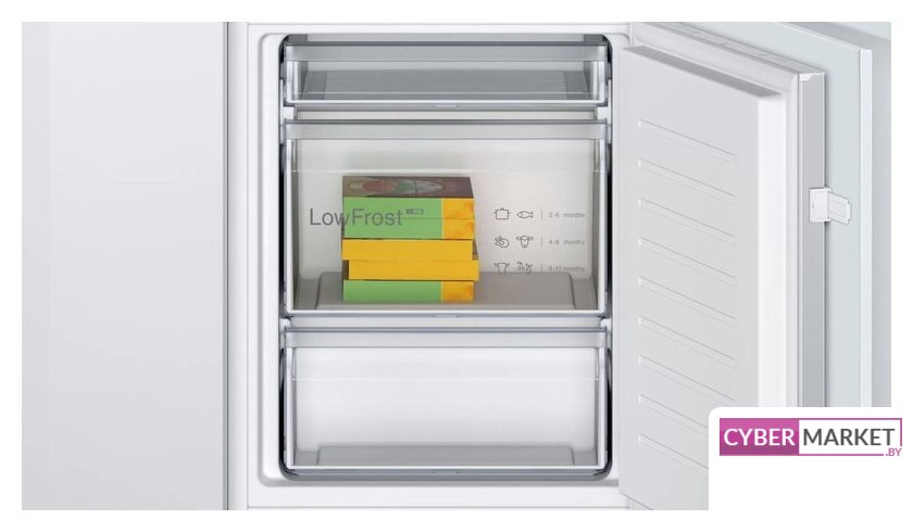 встраиваемый, скользящие направляющие, полный No Frost, электронное управление, полезный объём: 280 л (212 + 68 л), зона свежести, перенавешиваемые двери, лоток для яиц, 54x54.5x193.5 см, белый