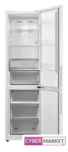 отдельностоящий, без No Frost, электронное управление, класс A+, полезный объём: 370 л (251 + 119 л), зона свежести, перенавешиваемые двери, выдвижной/подвесной контейнер, лоток для яиц, 59.5x62.7x206.8 см, белый