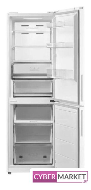отдельностоящий, без No Frost, электронное управление, класс A+, полезный объём: 364 л (205 + 159 л), зона свежести, перенавешиваемые двери, выдвижной/подвесной контейнер, подставка-лоток для бутылок, лоток для яиц, 59.5x62.7x206.8 см, белый