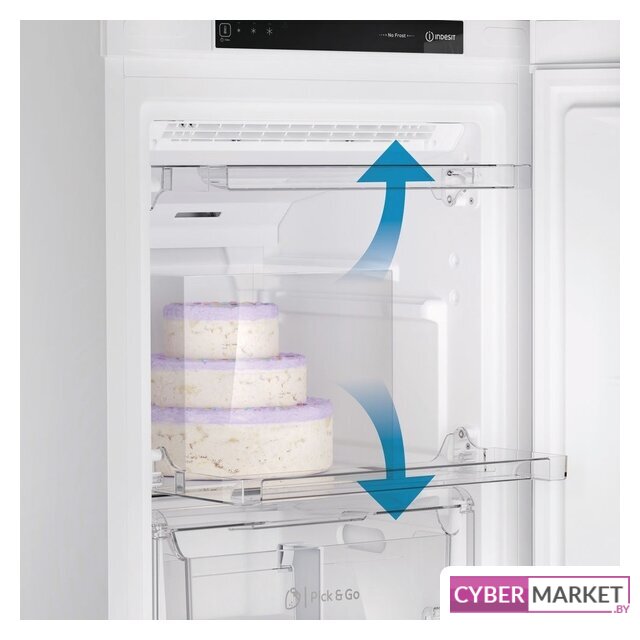 отдельностоящий, полный No Frost, механическое управление, класс A+, полезный объём: 276 л (200 + 76 л), перенавешиваемые двери, лоток для яиц, 54x60x184 см, серебристый