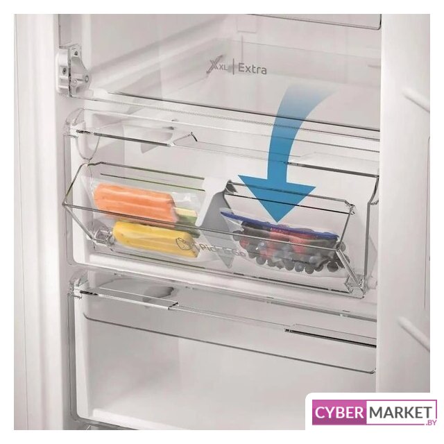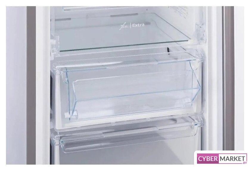 отдельностоящий, без No Frost, электронное управление, класс A+, полезный объём: 364 л (205 + 159 л), зона свежести, подставка-лоток для бутылок, лоток для яиц, 59.5x62.7x206.8 см, серебристый