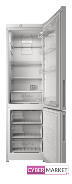 отдельностоящий, без No Frost, электронное управление, класс A+, полезный объём: 324 л (205 + 119 л), зона свежести, подставка-лоток для бутылок, лоток для яиц, 59.5x62.7x186.8 см, серебристый