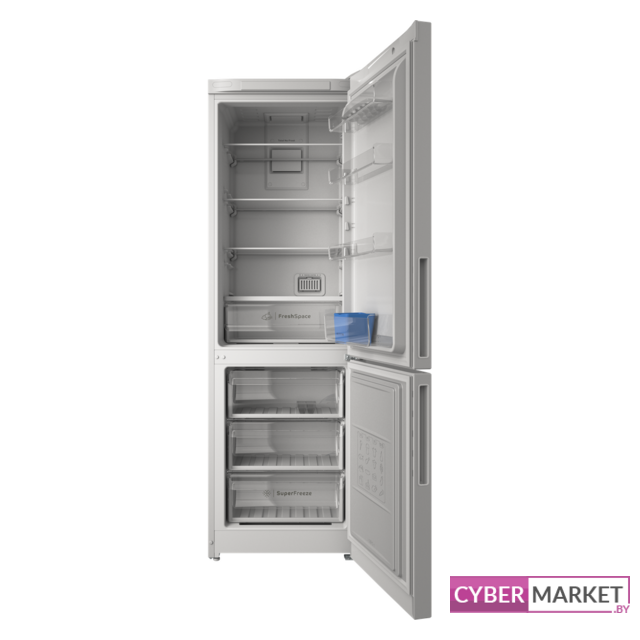 отдельностоящий, без No Frost, электронное управление, класс A+, полезный объём: 301 л (182 + 119 л), перенавешиваемые двери, лоток для яиц, 59.5x62.7x176.8 см, серебристый