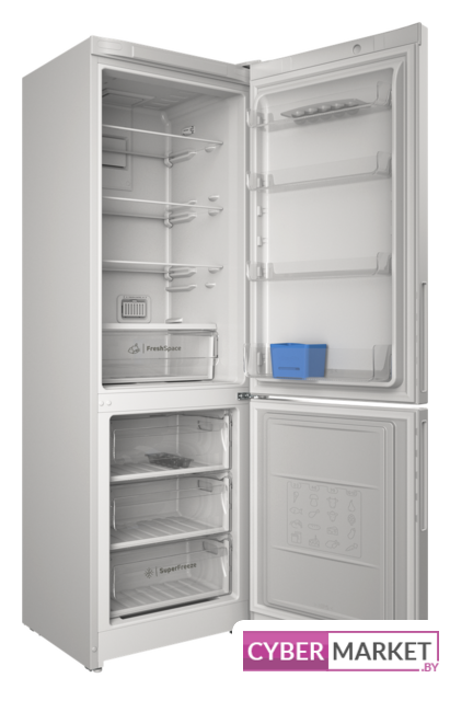отдельностоящий, без No Frost, электронное управление, класс A+, полезный объём: 262 л (187 + 75 л), перенавешиваемые двери, лоток для яиц, 54x55x176 см, белый