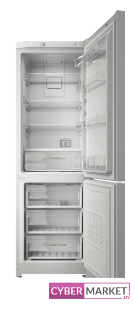 отдельностоящий, без No Frost, электронное управление, класс A+, полезный объём: 324 л (205 + 119 л), зона свежести, перенавешиваемые двери, полка для вина, лоток для яиц, 59.5x62.9x186.8 см, белый