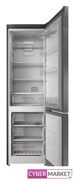 отдельностоящий, без No Frost, электронное управление, класс A+, полезный объём: 324 л (205 + 119 л), зона свежести, перенавешиваемые двери, выдвижной/подвесной контейнер, подставка-лоток для бутылок, лоток для яиц, 59.5x62.7x186.8 см, белый