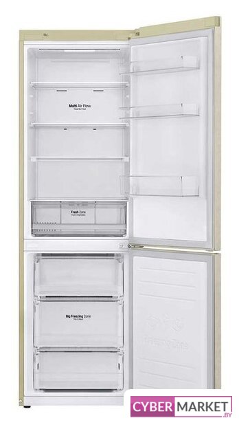 отдельностоящий, полный No Frost, электронное управление, класс A+, полезный объём: 367 л (269 + 98 л), инверторный компрессор, зона свежести, перенавешиваемые двери, лоток для яиц, 59.5x67.5x201 см, бежевый