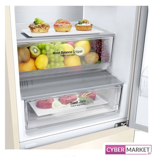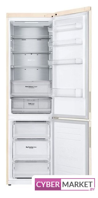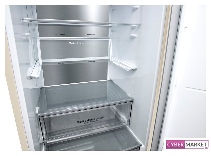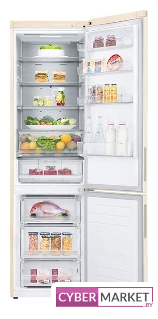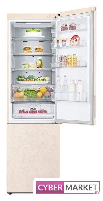 отдельностоящий, полный No Frost, электронное управление, класс A++, полезный объём: 384 л (277 + 107 л), инверторный компрессор, зона свежести, перенавешиваемые двери, складная полка, полка для вина, лоток для яиц, 59.5x68.2x203 см, бежевый