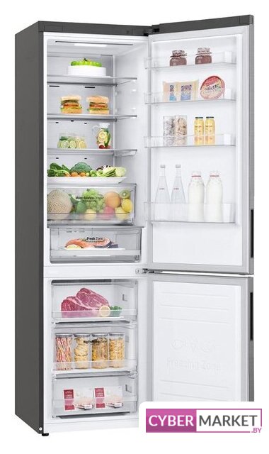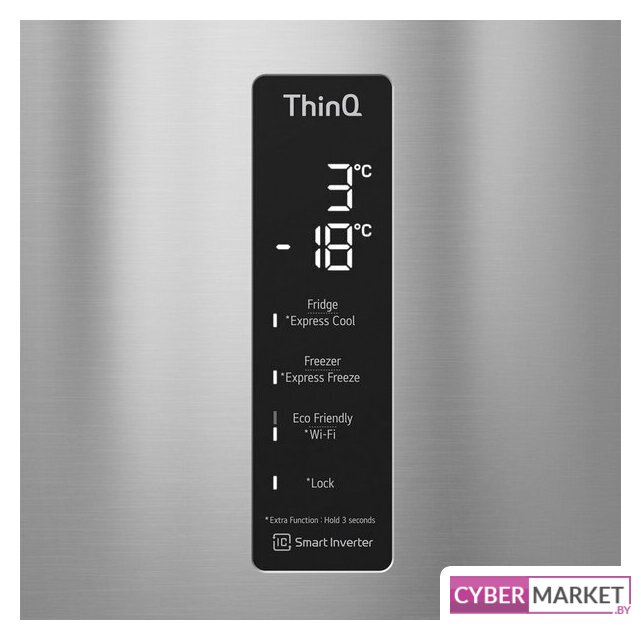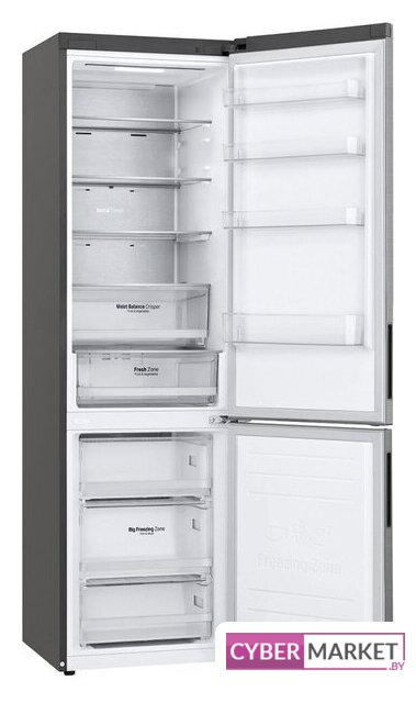 отдельностоящий, полный No Frost, электронное управление, класс A+, полезный объём: 384 л (277 + 107 л), инверторный компрессор, перенавешиваемые двери, складная полка, лоток для яиц, 59.5x68.2x203 см, графит