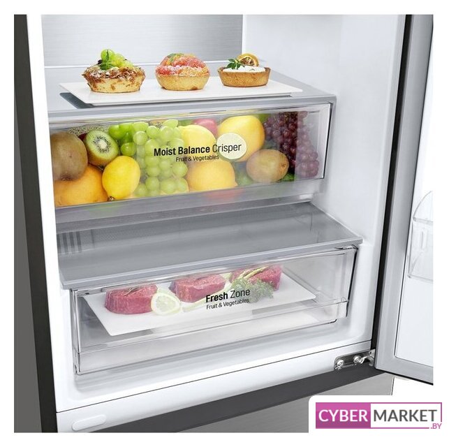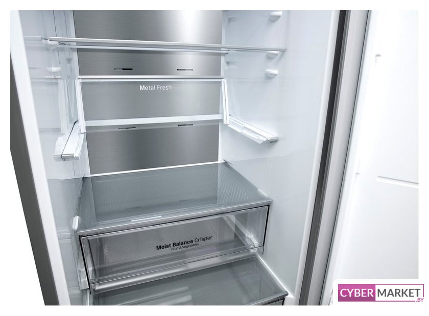 отдельностоящий, полный No Frost, электронное управление, класс A+, полезный объём: 367 л (269 + 98 л), инверторный компрессор, зона свежести, перенавешиваемые двери, лоток для яиц, 59.5x67.5x201 см, титан