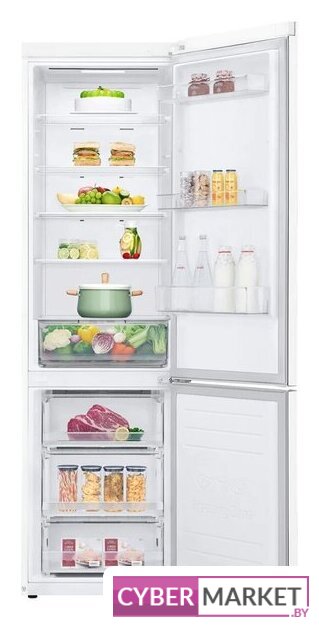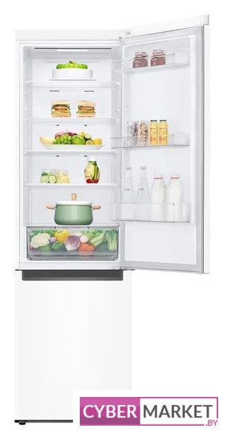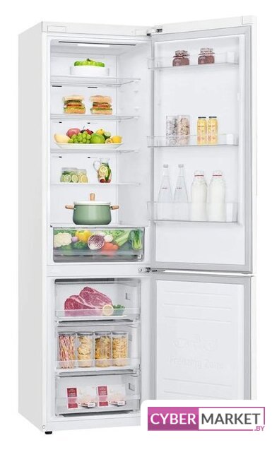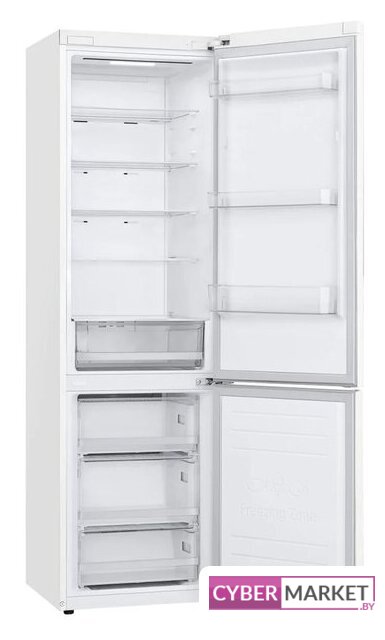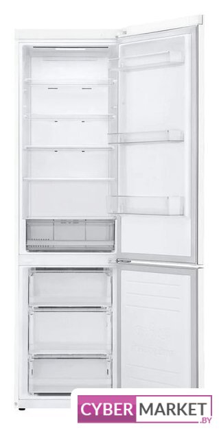 отдельностоящий, полный No Frost, электронное управление, класс A+, полезный объём: 384 л (277 + 107 л), инверторный компрессор, перенавешиваемые двери, складная полка, лоток для яиц, 59.5x68.2x203 см, белый