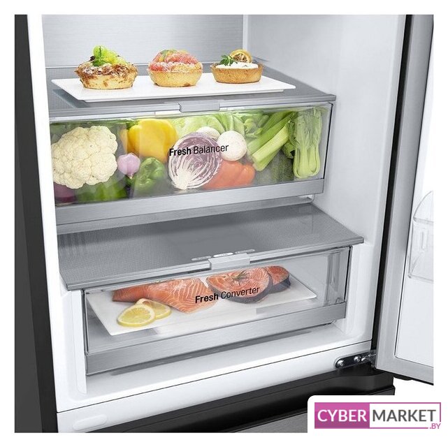 отдельностоящий, полный No Frost, электронное управление, класс A+ (277 + 107 л), инверторный компрессор, перенавешиваемые двери, нулевой зазор, лоток для яиц, 59.5x68.2x203 см, графит