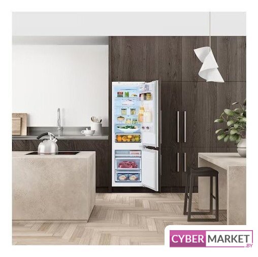 встраиваемый, жесткое, полный No Frost, сенсорное управление, полезный объём: 248 л (186 + 62 л), перенавешиваемые двери, лоток для яиц, 54x54.9x177.9 см, белый