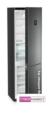 отдельностоящий, полный No Frost, сенсорное управление, класс A+, полезный объём: 606 л (365 + 241 л), инверторный компрессор, 96x63.5x191.2 см, черный/нержавеющая сталь