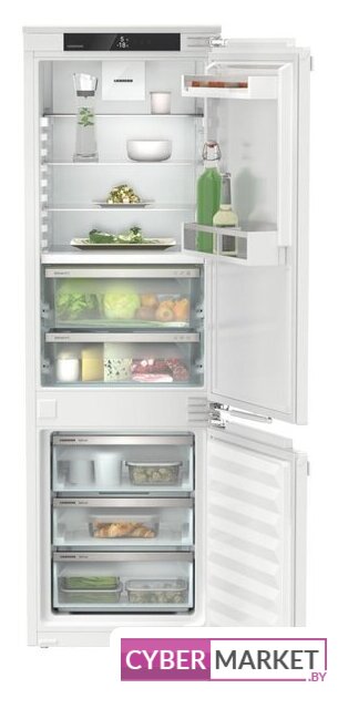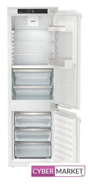 встраиваемый, скользящие направляющие, полный No Frost, электронное управление, полезный объём: 298 л (224 + 74 л), инверторный компрессор, зона свежести, перенавешиваемые двери, полка для вина, 54x55x193.5 см, белый