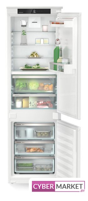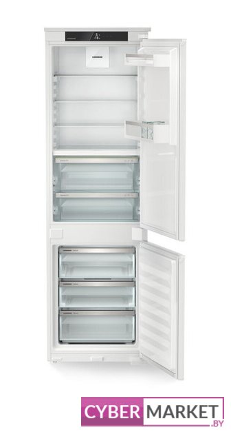 встраиваемый, плоские шарниры, без No Frost, электронное управление, полезный объём: 272 л (209 + 63 л), перенавешиваемые двери, лоток для яиц, 55.8x54.5x177.2 см, белый