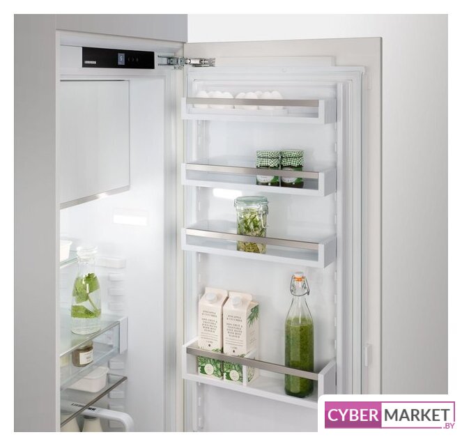 встраиваемый, скользящие направляющие, полный No Frost, электронное управление, полезный объём: 298 л (224 + 74 л), инверторный компрессор, зона свежести, перенавешиваемые двери, полка для вина, 54x55x193.5 см, белый