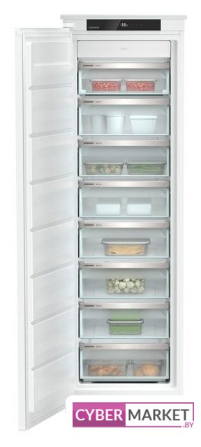 встраиваемый, скользящие направляющие, полный No Frost, электронное управление, полезный объём: 267 л (193 + 74 л), инверторный компрессор, зона свежести, перенавешиваемые двери, полка для вина, лоток для яиц, 54x55x177.5 см, белый